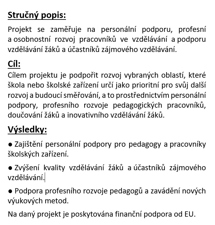 - Projekty školy