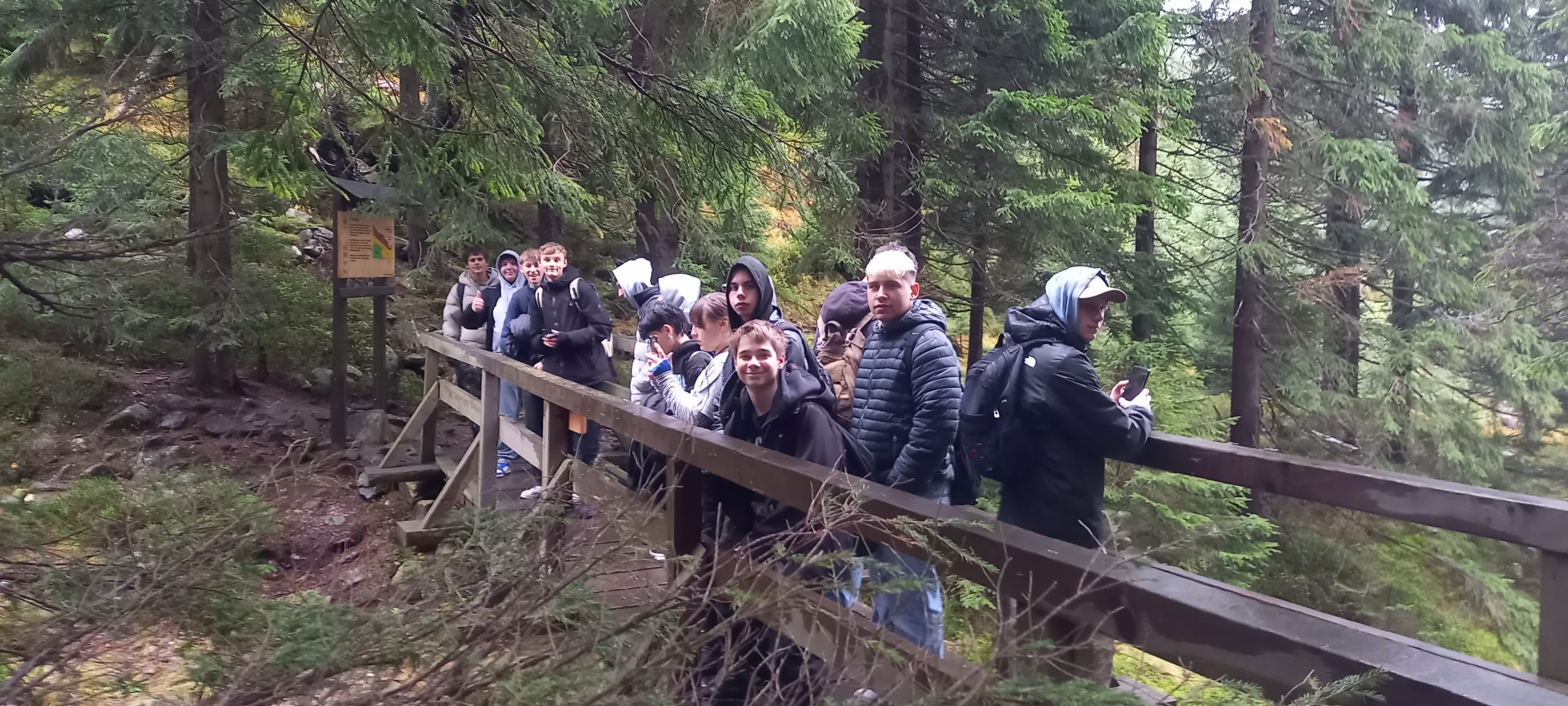 V úterý 16. října 2025 vyrazili žáci několika tříd na exkurzi do Krkonošského národního parku. Společně s odborným průvodcem se vydali po naučné stezce Čertova strouha, poznávali flóru, faunu a technické zajímavosti hor. Bohužel většina žáků příležitost nevyužila. Projevoval se nezájem o okolí i výklad lektora, často bylo nutné je napomínat a motivovat k alespoň základní spolupráci. Stěžovali si na únavu, počasí či chůzi, a mnozí procházku brali spíš jako nutnost než jako možnost něco poznat. I když někteří projevovali menší zájem a chůze byla pro ně někdy náročná, většina si z výletu odnesla nové poznatky a připomněla si, že přírodu je třeba nejen chránit, ale také si ji všímat a užívat.