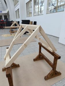 U náročného úkolu modelu střechy se soutěžící usilovně pouští do práce. Druhý den všichni mají model v časovém limitu dokončený a rovněž zvládli postavit bednění. Všech 15 žáků studentů oboru tesař, kteří dokázali postoupit do tohoto finále, zaslouží naše uznání.