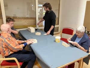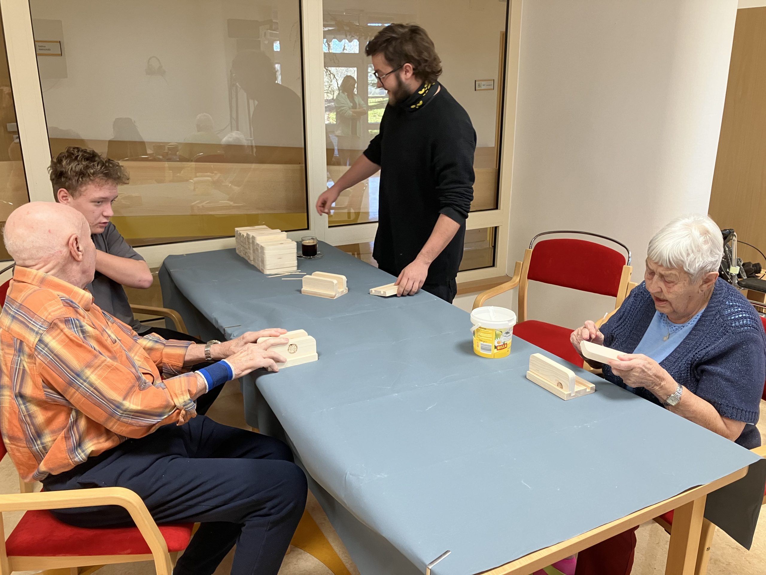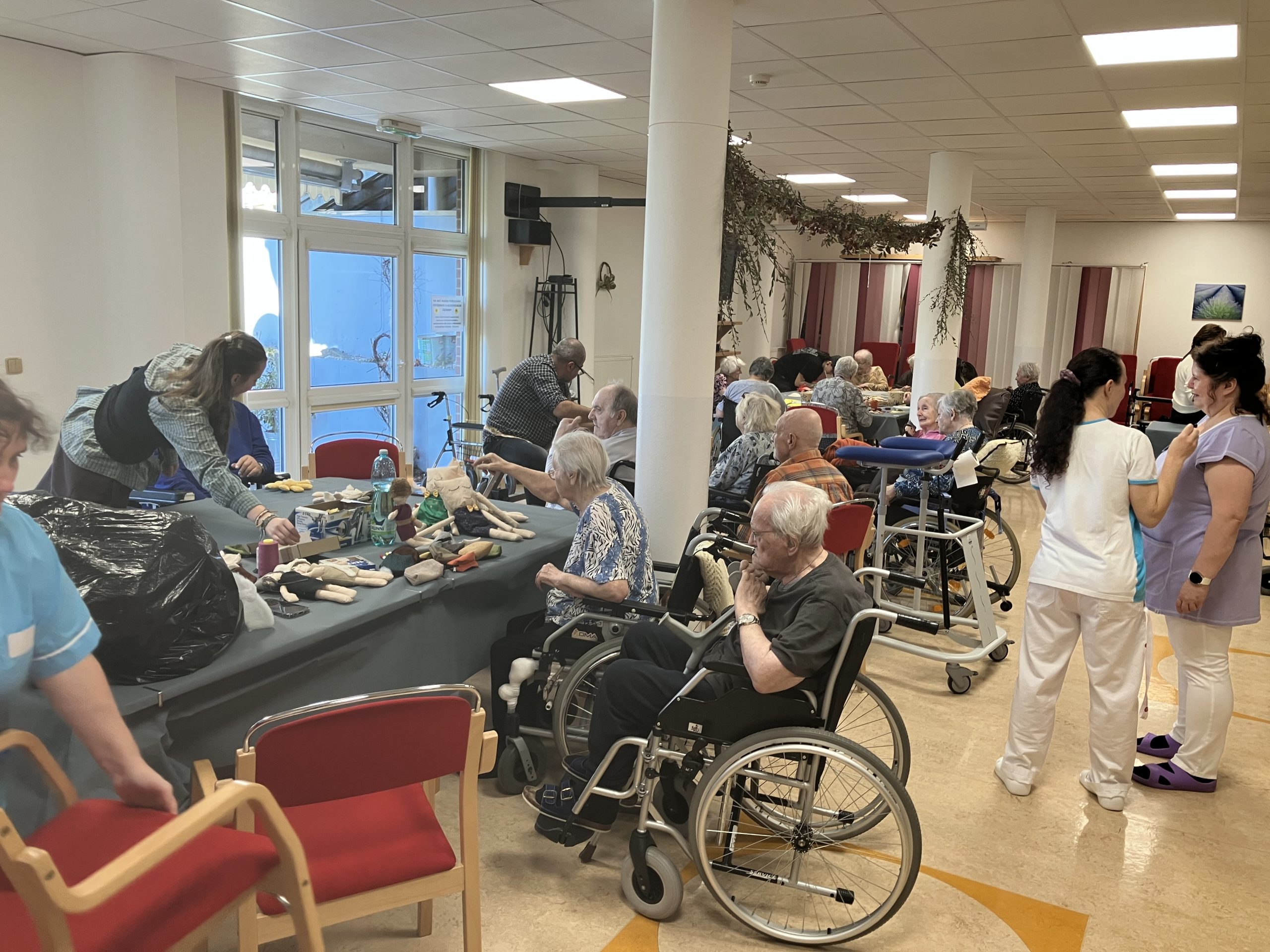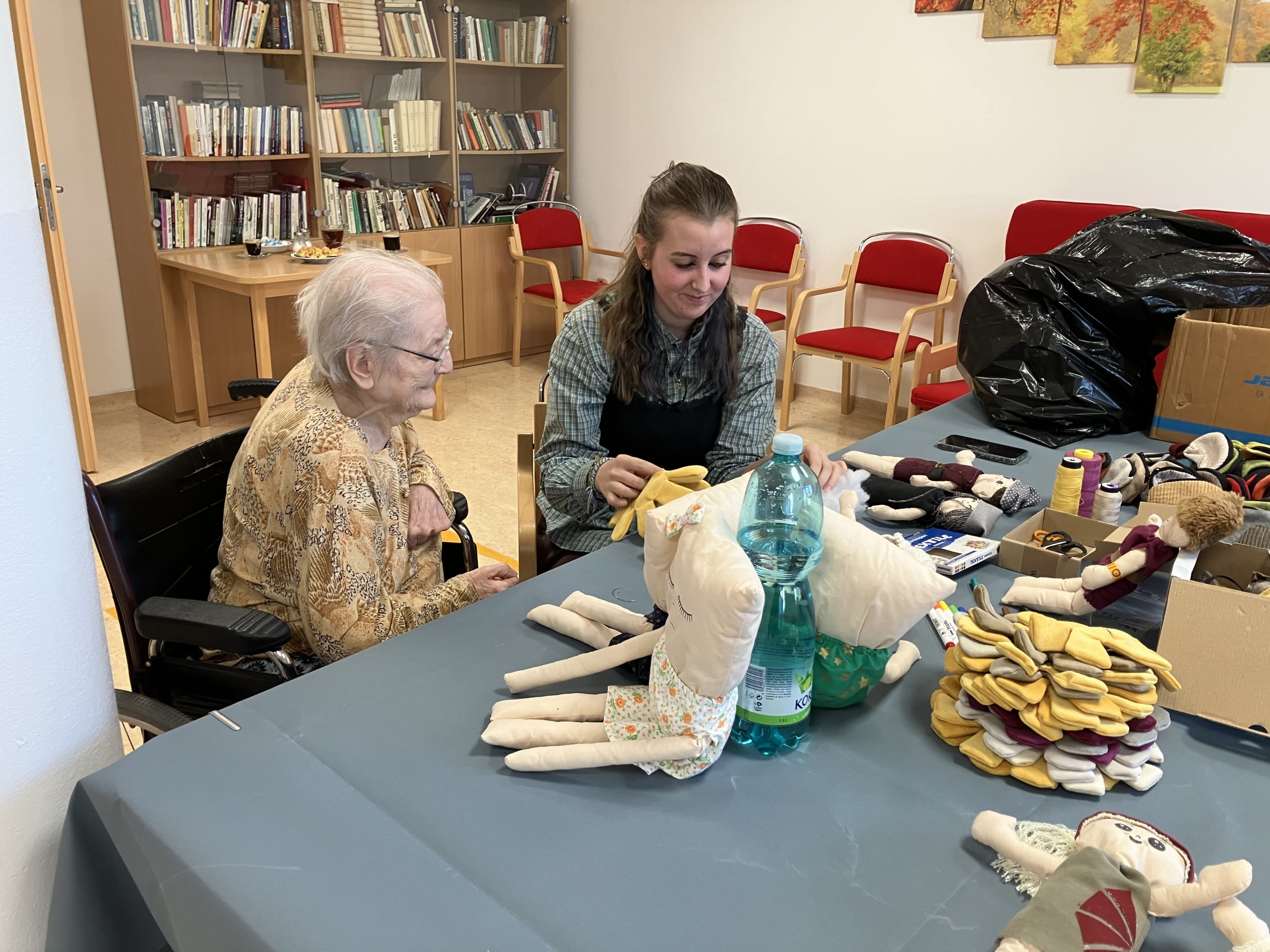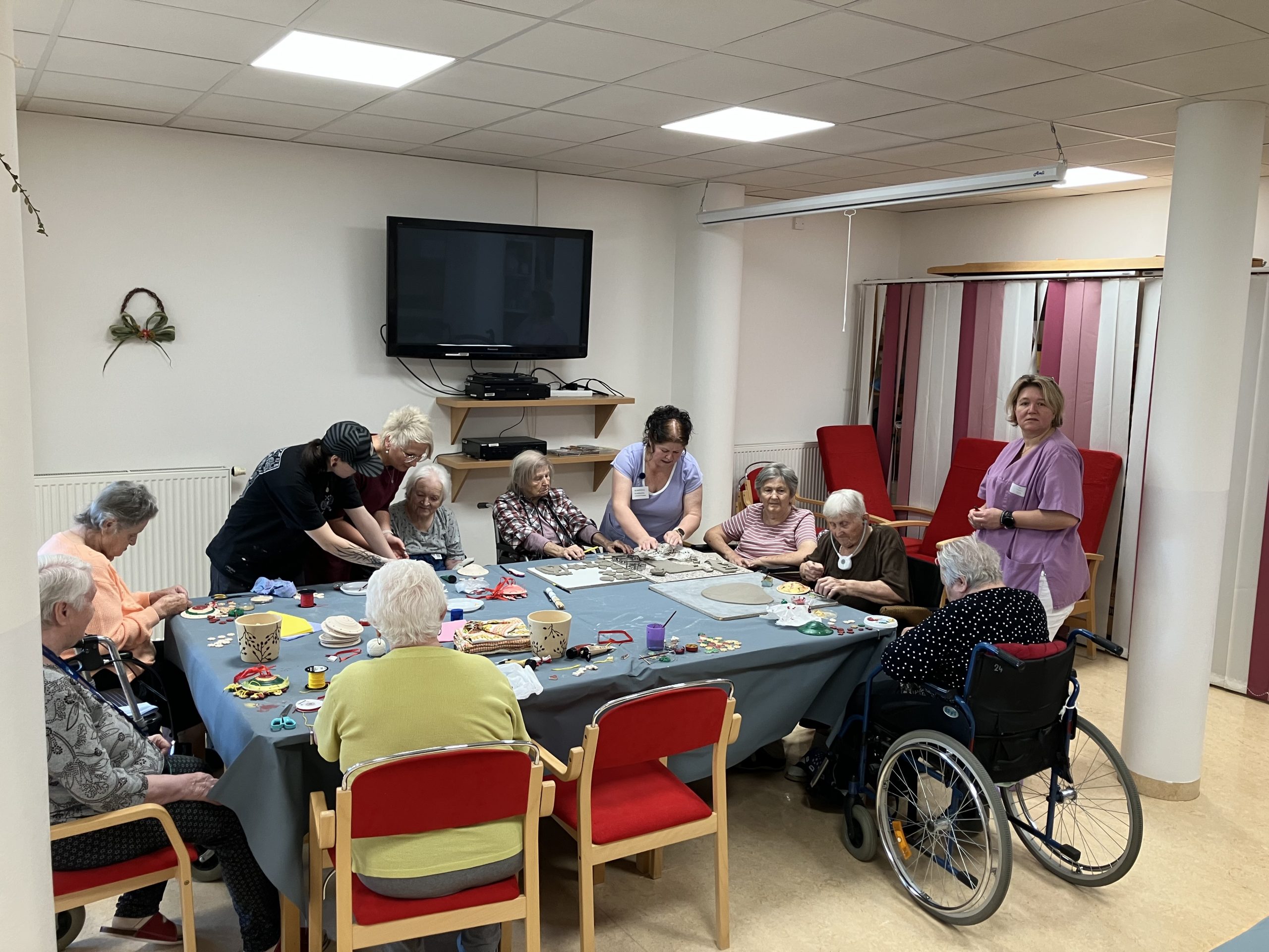 6. listopadu ráno z aktivity Valérie Tlustošové (umělecké kovářky) vyjelo 5 žáků naší školy do Domova důchodců v Polici nad Metují, aby jim zapojením do výroby a zdobení dárků udělali krásné dopoledne. Již předem si připravili polotovary výrobků z textilu, keramiky a ze dřeva, které budou následně sloužit jako rehabilitační pomůcky či ozdobné předměty na pokojích anebo jen tak pro radost. Kolem deváté hodiny se první babičky a dědečkové začali nesměle zapojovat do činnosti, aby před polednem všichni, kteří ještě pro své handicapy toho byli schopni, tvořili vše, co bylo připraveno. A ti, kteří již neměli dost sil, sledovali ostatní a alespoň vedli debaty, vzpomínali, nebo se jen šťastně usmívali. Po dvanácté hodině již byla znát únava a postupně se začali odebírat na pokoje nebo do jídelny na oběd. Všichni ale děkovali, loučili se a došlo i na pohlazení a slzy. Přes své ošetřovatelky pak poslali vzkaz, že to byl jeden z nejhezčích dní u nich v domově. Závěrem ještě dojatá děvčata zbylé našité dárky roznesla po pokojích těm, kteří se již pro svůj vážný zdravotní stav nemohli do akce zapojit a vyrobit si, nebo si nechat vyrobit ten svůj.