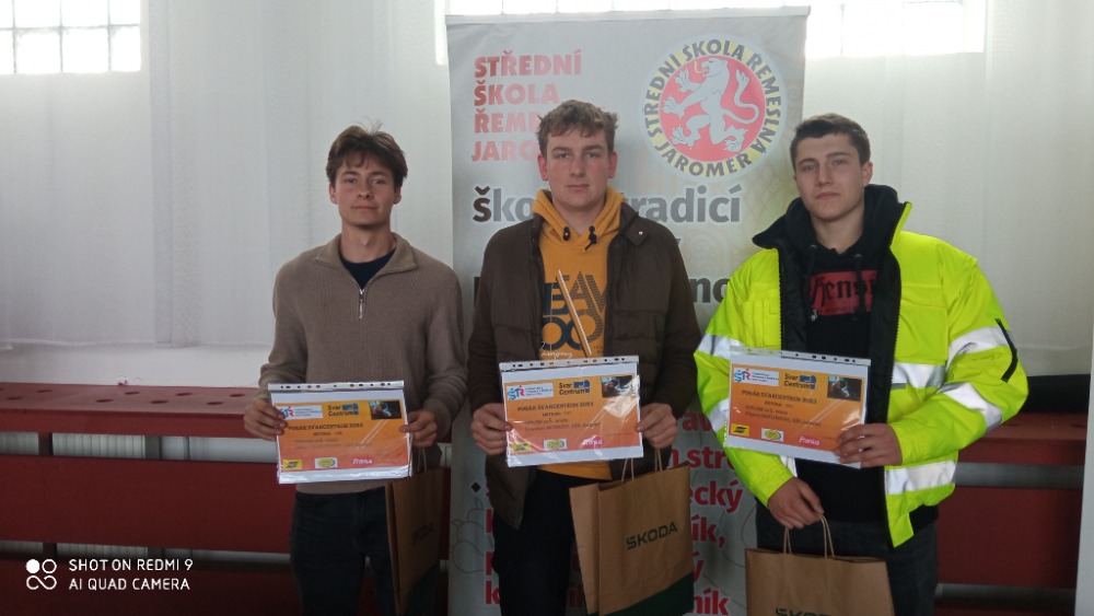 V úterý 21.10. 2025 se konala na Střední škole technické a řemeslné v Novém Bydžově svářečská soutěž „Pohár Svarcentrum 2025“. Této soutěže se z naší školy zúčastnil Jiří Vejroch, Šimon Nosek a Filip Matuška. Jirka svařoval tavící se elektrodou v ochraně aktivního plynu (CO2) a umístil se na pátém místě. Šimon svařoval obalenou elektrodou a umístil se také na 5 místě. Filip svařoval netavící se elektrodou v ochraně inertního plynu(TIG) a umístil se na šestém místě. Na svaření soutěžního sváru byla časová dotace 60 minut. Poté ještě kluci psali test z bezpečnosti při svařování a technologie. Klukům patří poděkování za reprezentaci školy a zodpovědný přístup k soutěži.